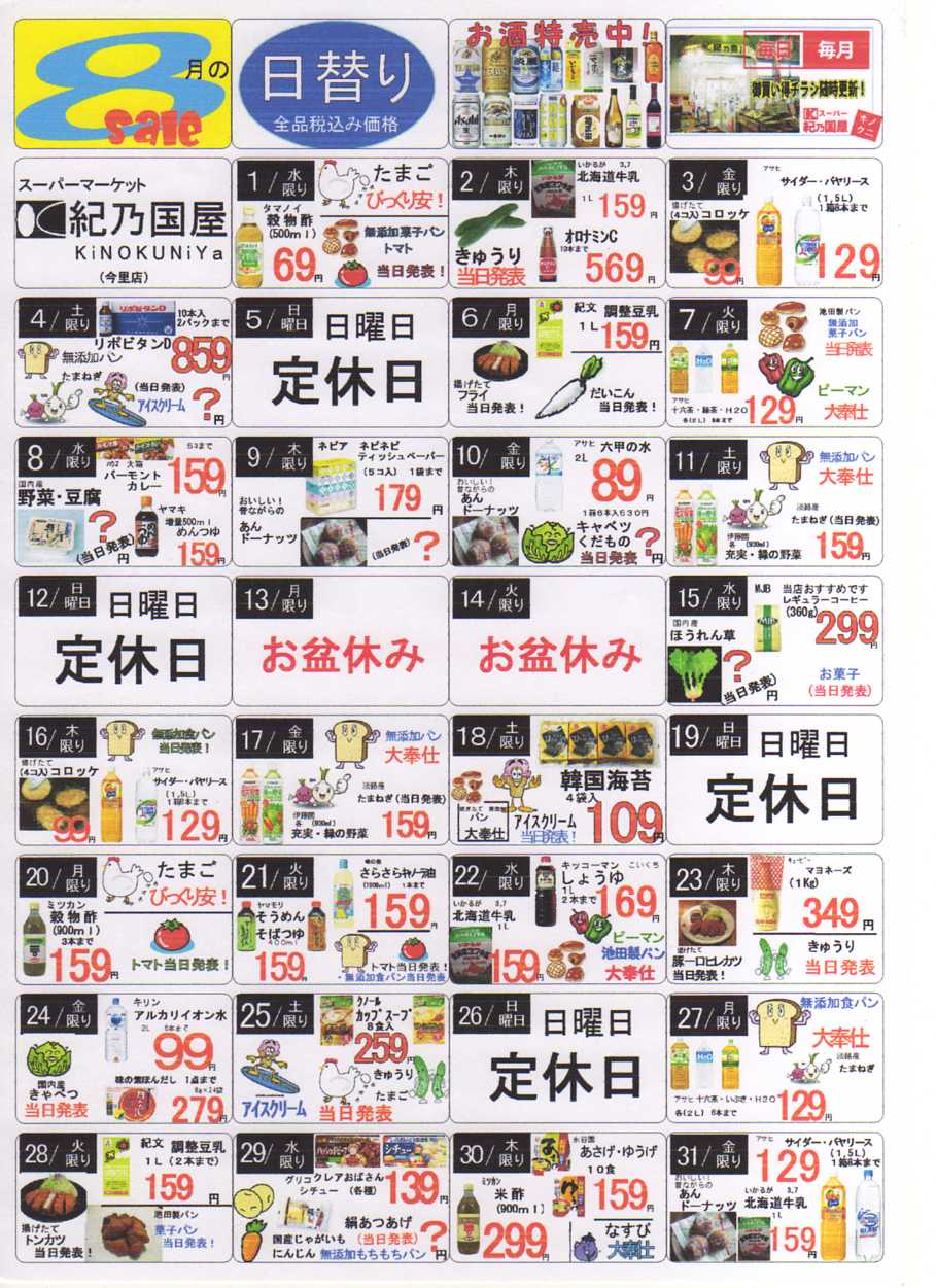 8月のお買い得チラシです