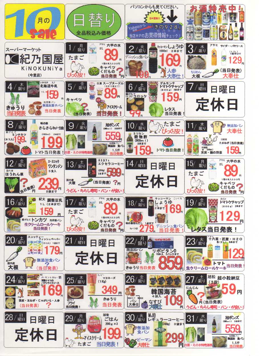 10月 お買い得チラシ 毎日お買い得変わります!